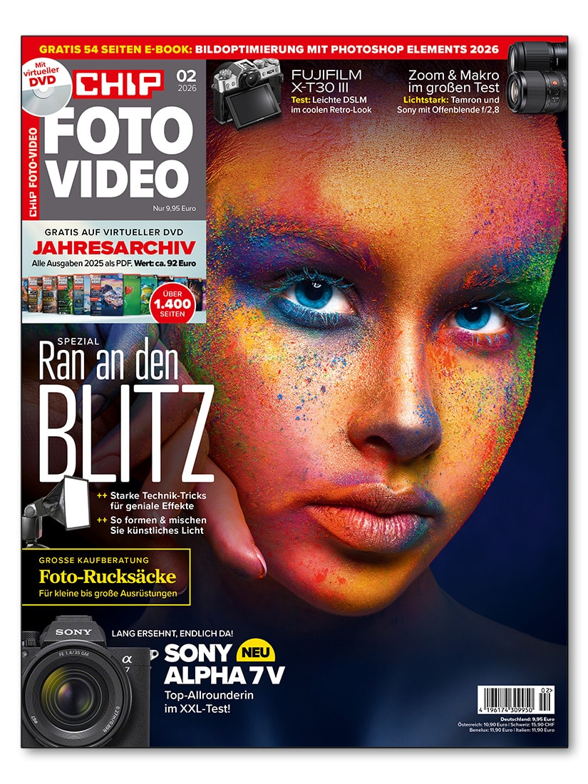 Mit dem CHIP FOTO-VIDEO Abo erhalten Sie regelmäßig aktuelle Tests & Kaufberatung zu Kameras, Objektiven und Zubehör sowie verständliche Tipps für bessere Fotos. Hinzu kommen beeindruckende Bildwelten aus allen Bereichen der Fotografie. Kurzum: Das Redaktionsteam berichtet aktuell und unabhängig über alles, was ambitionierte Fotografen interessiert.